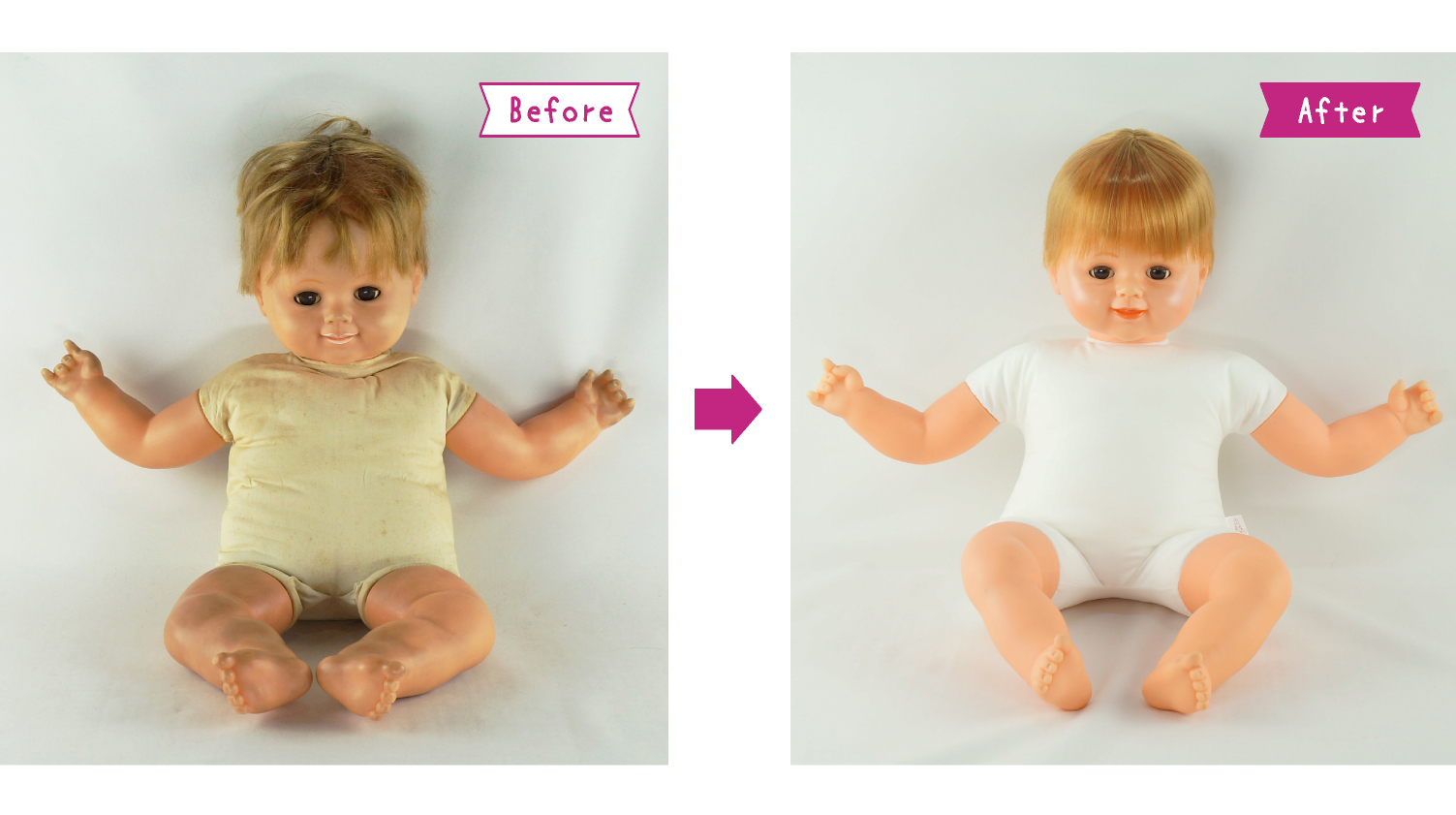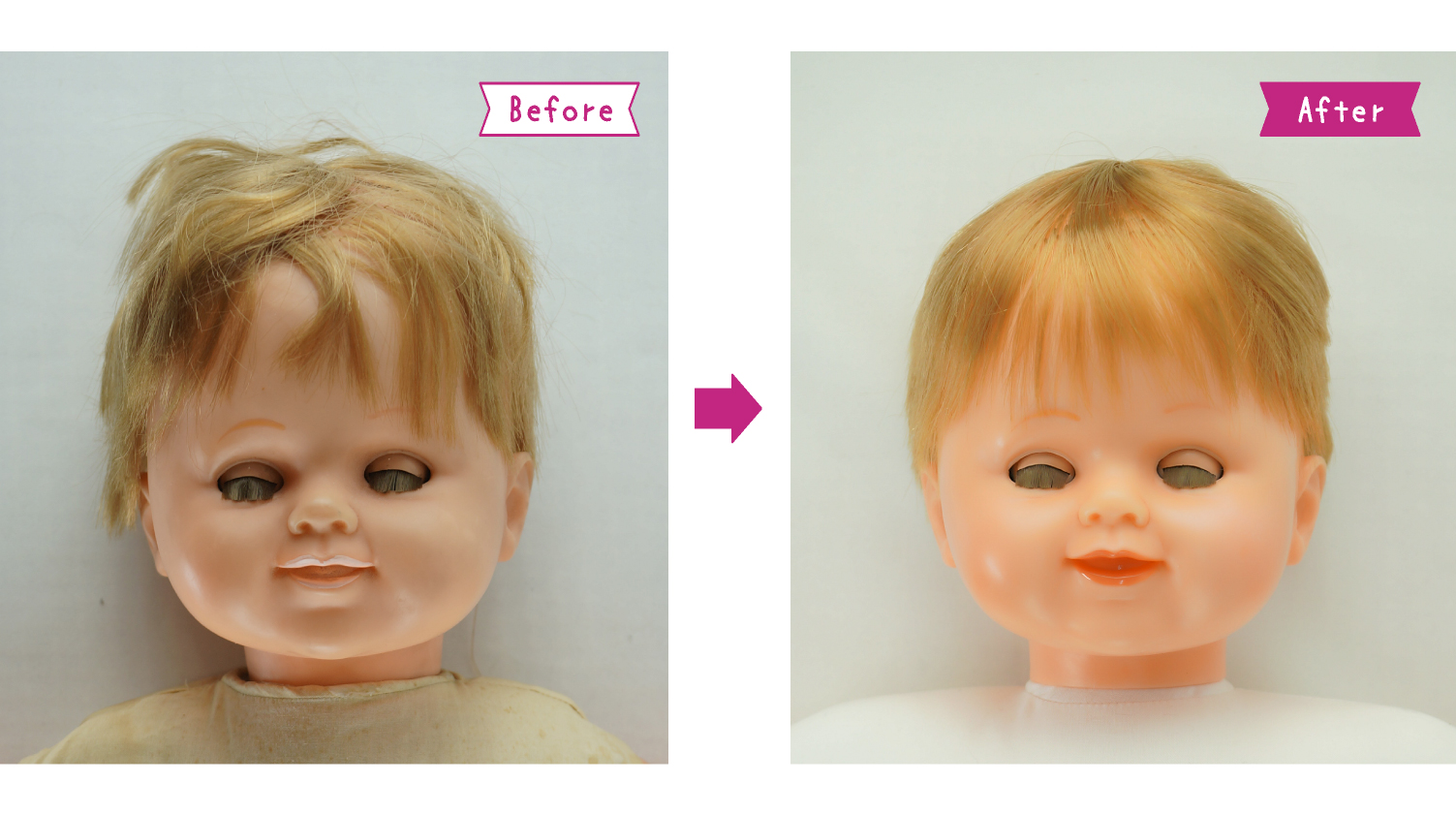 *お顔・腕・脚 ソフトビニール部分のクリーニング *髪の絡み解き *髪の毛のシャンプー・セット *彩色直し(ほほ・唇 ) *布ボディの新調