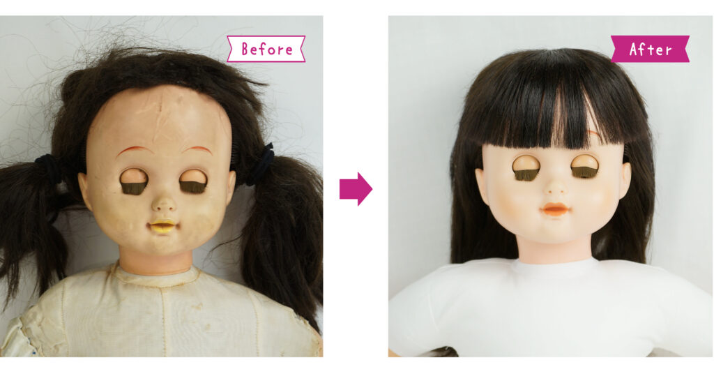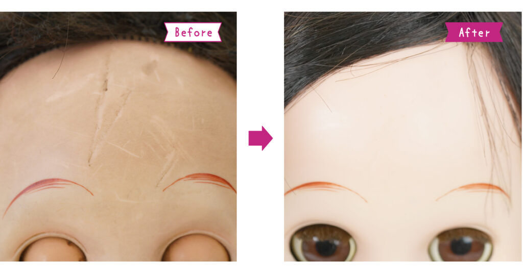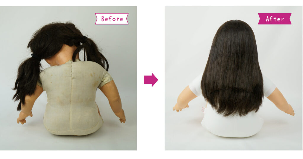 髪の毛が熱に当たって縮れていました。固まっているところを丁寧に除去し、ストレートに伸ばしました。