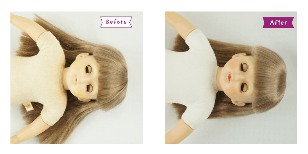 *顔・腕・ビニール部分のクリーニング *髪の毛の絡み解き *髪の毛のシャンプー・ストレートパーマ *顔の彩色直し *まつ毛の再生