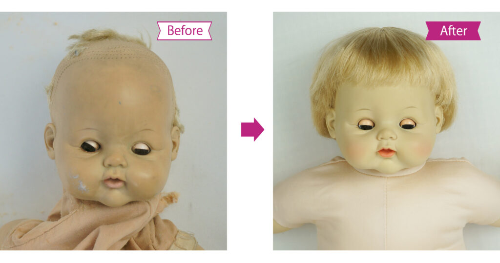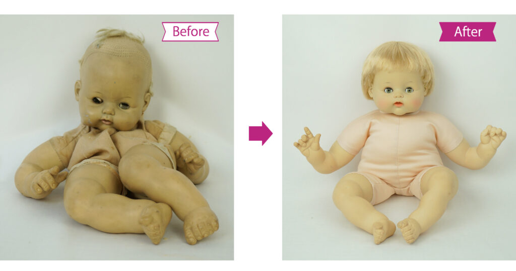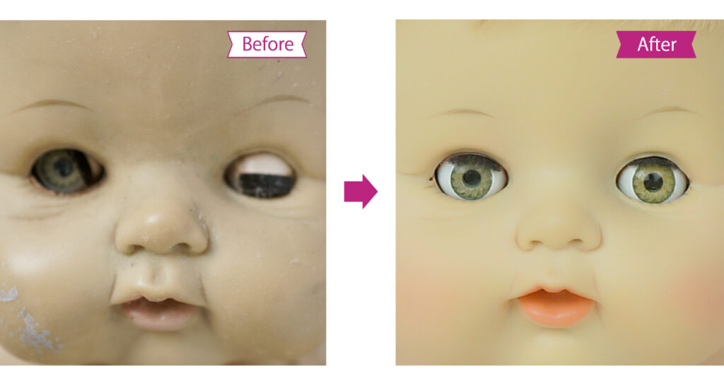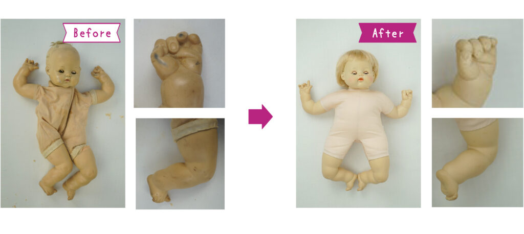 (*1)シミケアとは当院が開発したソフトビニールのお人形専用のシミ抜き剤です。