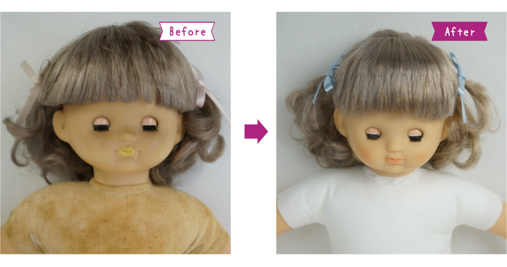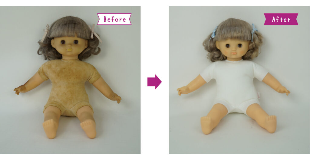 (*1)シミケアとは当院が開発したソフトビニールのお人形専用のシミ抜き剤です。