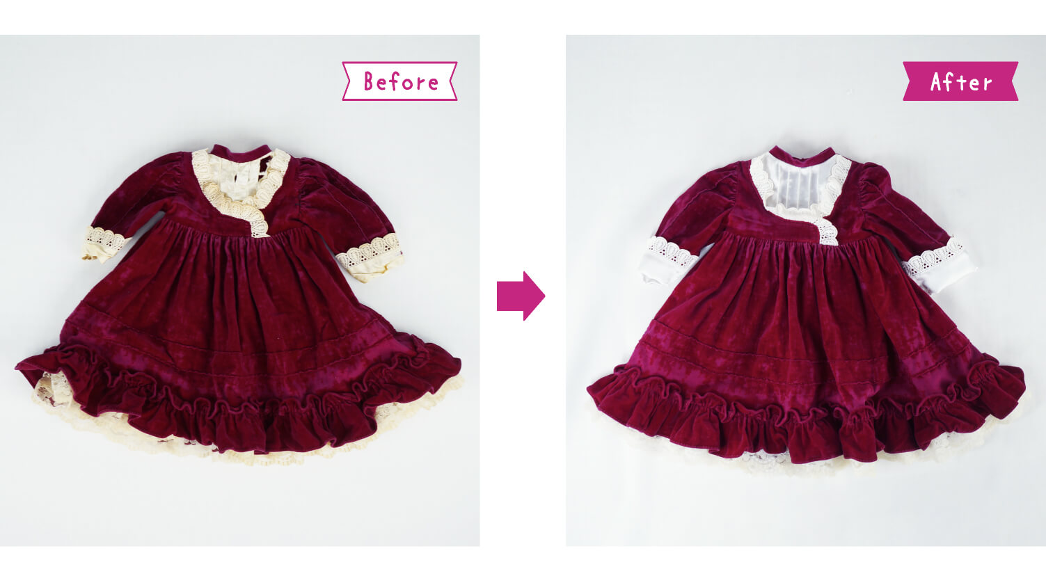 バーガンディのベルベットワンピースがとても良く似合いますね。