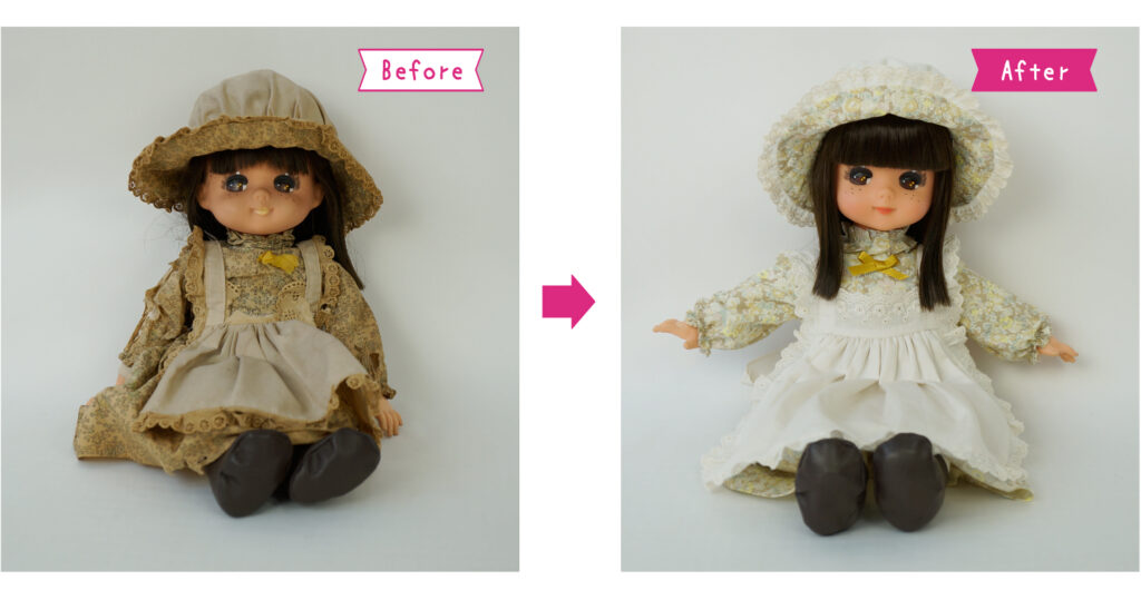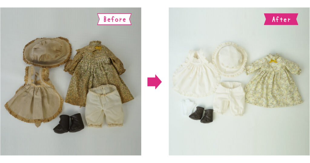 *お帽子・ワンピース・エプロンは新調しました。生地は出来るだけ近いものを探します。