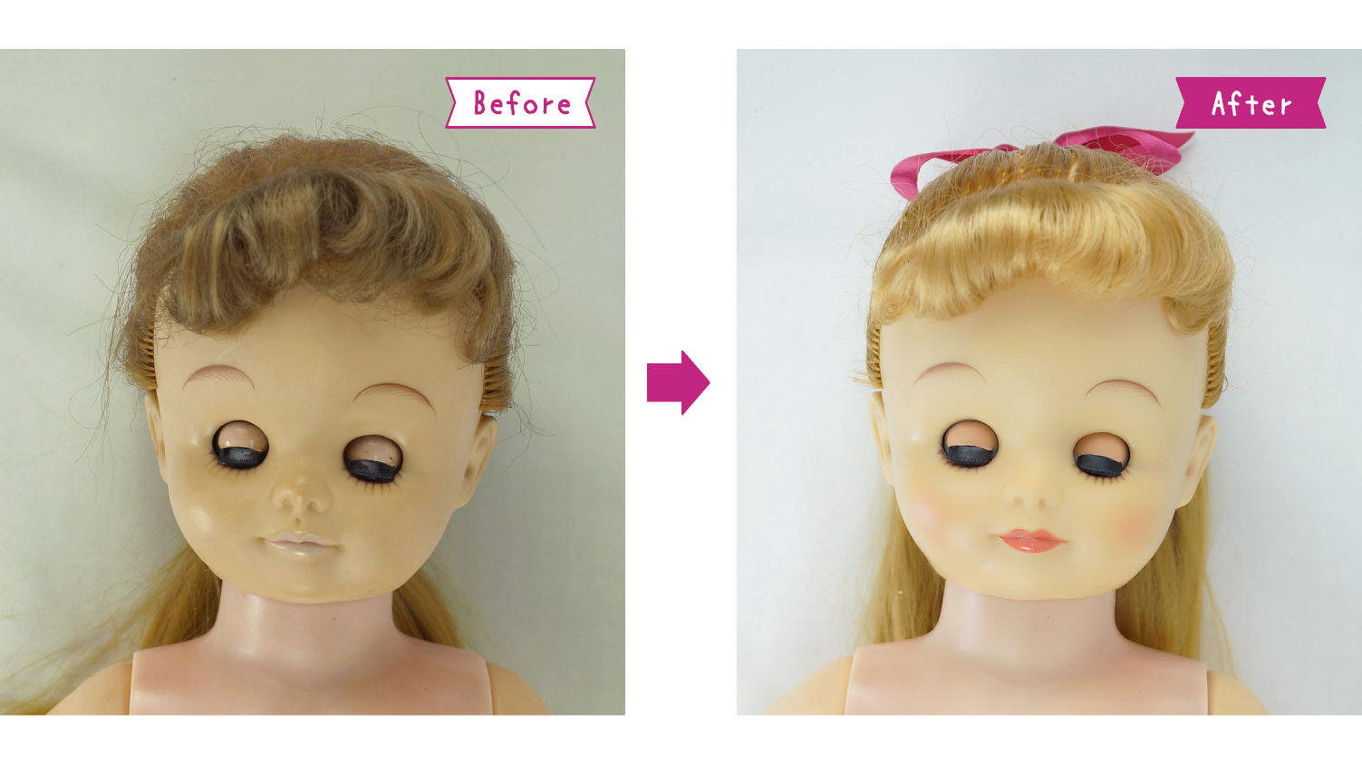 マリアちゃんは、手を引くと歩く「歩行人形」です。 ロングヘアーのポニーテールがステキですね。 お洋服は保護者さまの手作りです。