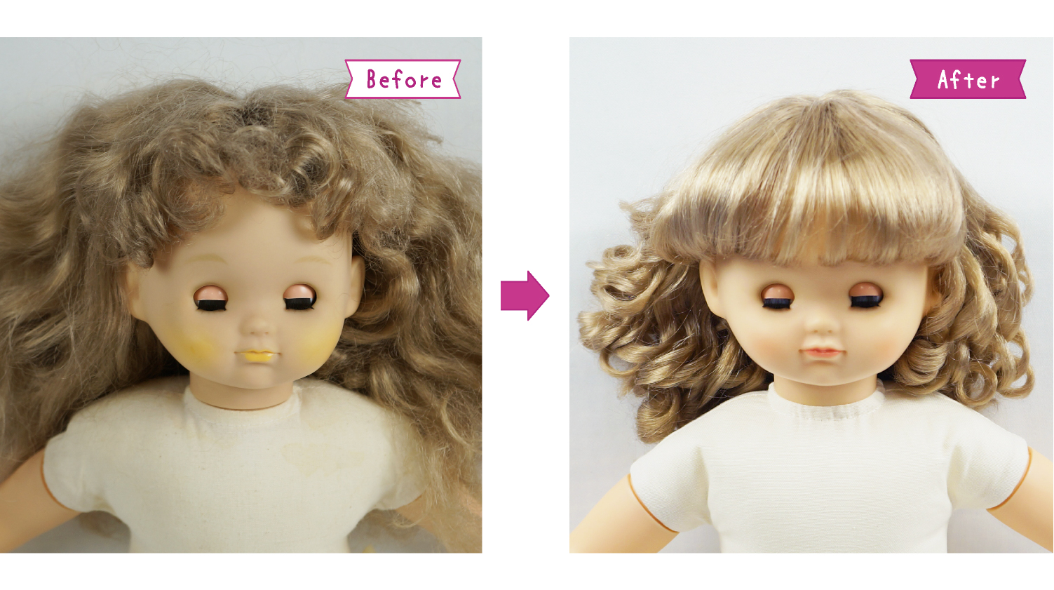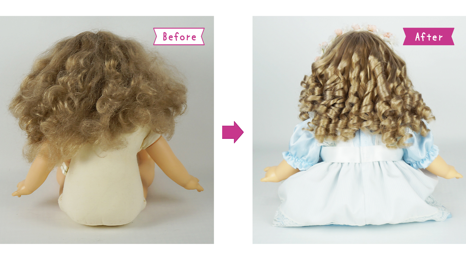 髪の毛は、絡みを取ってストレートにした上で縦ロールにしました。