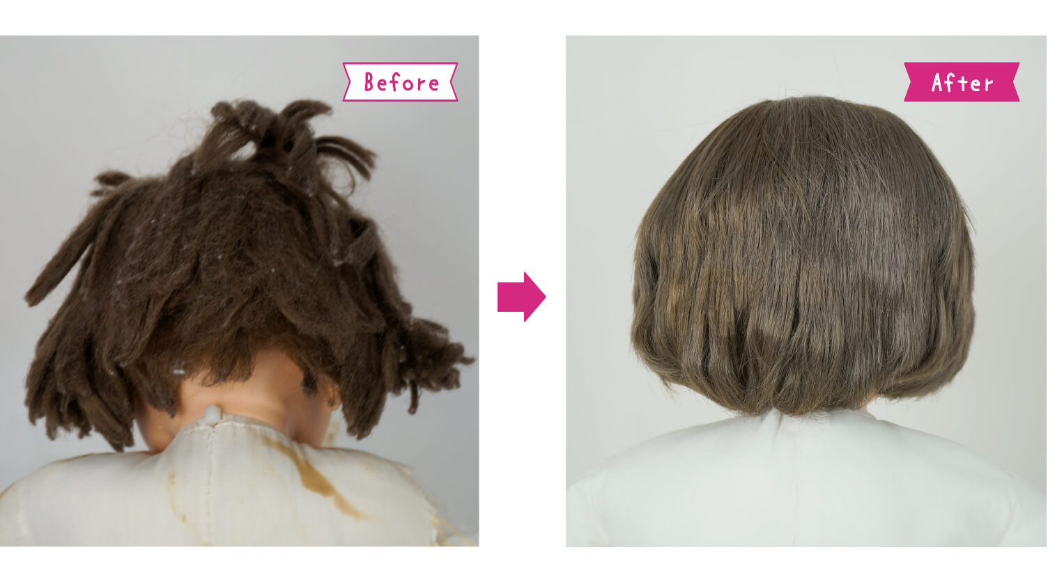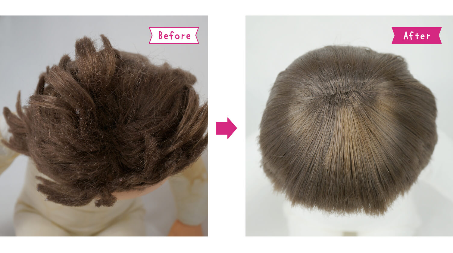 髪の毛の絡みをていねいに解き、分け目を正しく直しました。