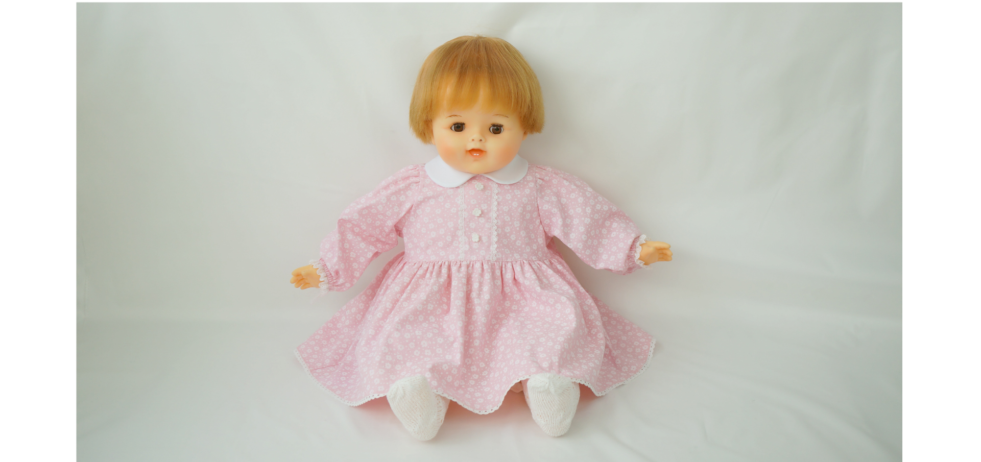 退院セットのピンクのワンピースがとても良く似合っています。