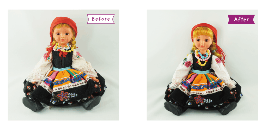 ミヤコちゃんはポーランドから来た民族衣装のステキなお人形です。 とっても元気になりました。