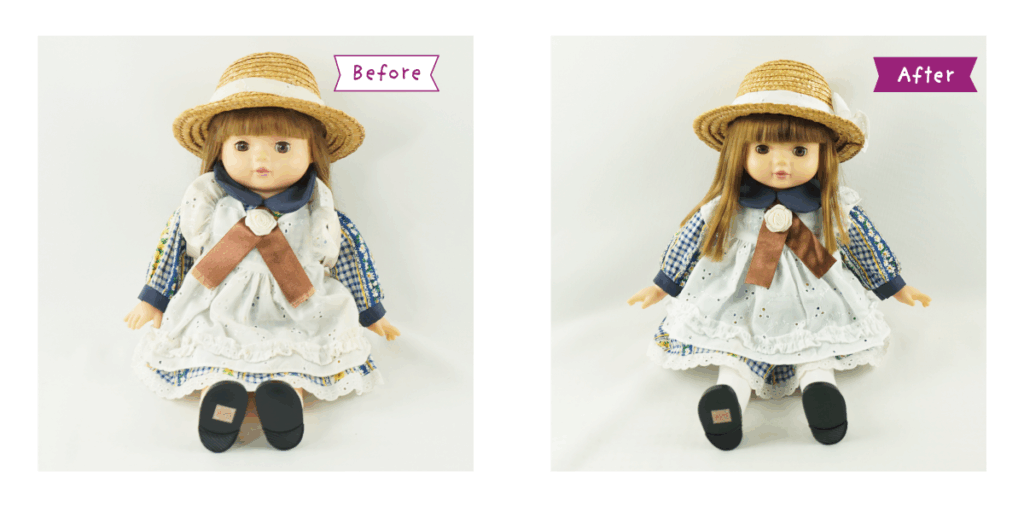 *顔・腕・ビニール部分のクリーニング *髪の毛のシャンプー・ストレートパーマ *顔の彩色直し *元のお洋服のクリーニング・補修 (麦わら帽子・ワンピース・エプロン・ドロワーズ・ソックス・靴) *セミオーダードレス