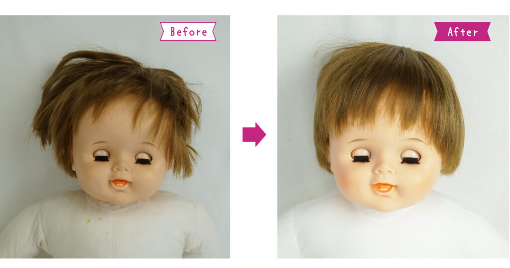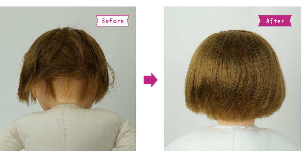 髪の毛の絡みを解き、分け目を正しく戻しました。