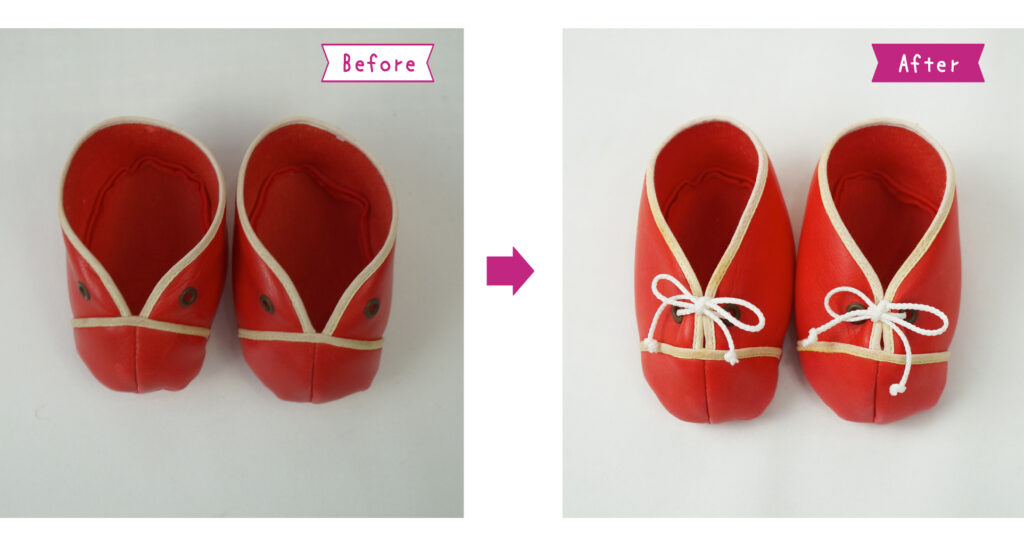 靴のクリーニングをし、無くなっていた靴紐を付けました。