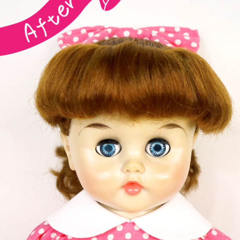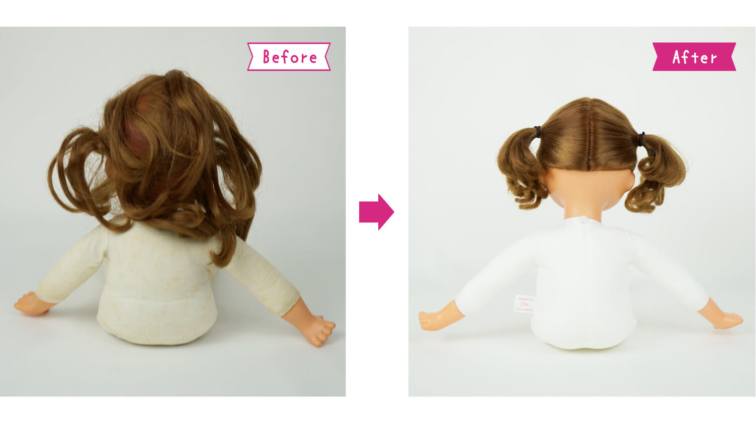 髪の毛の分け目を戻し、ツーテールに結びました。