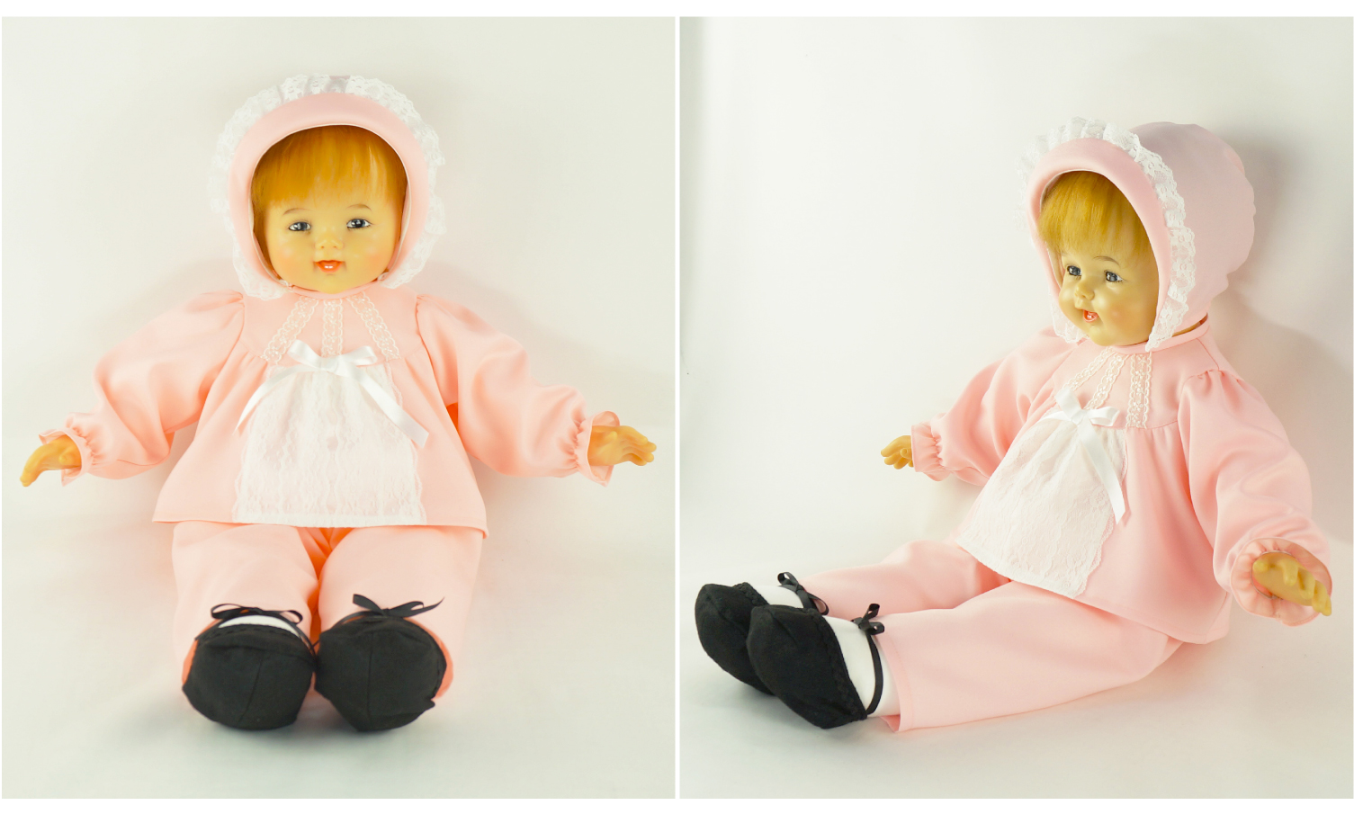 元々着ていた、ミリオンベビーのピンクのお洋服を再現しました。