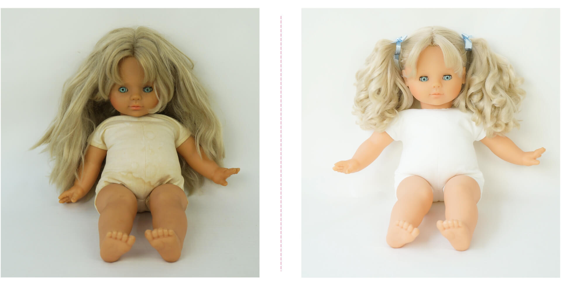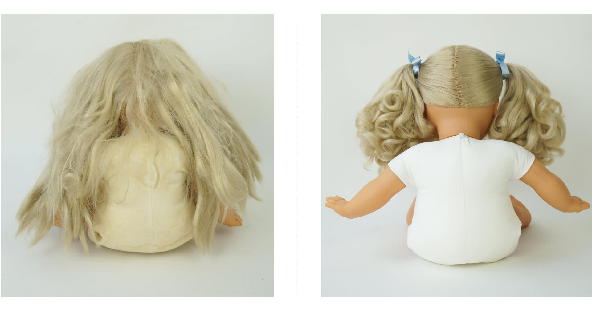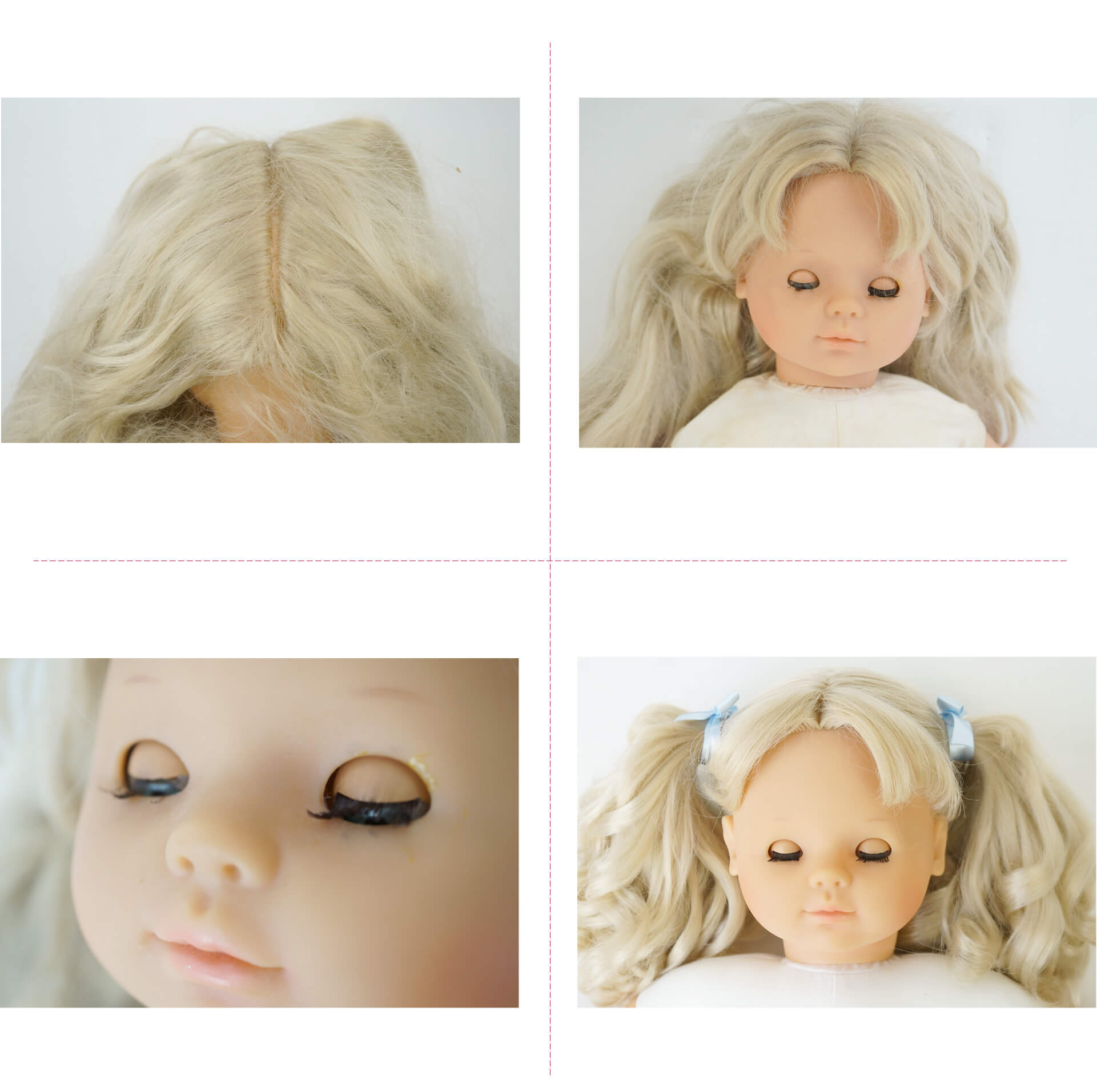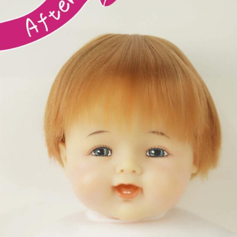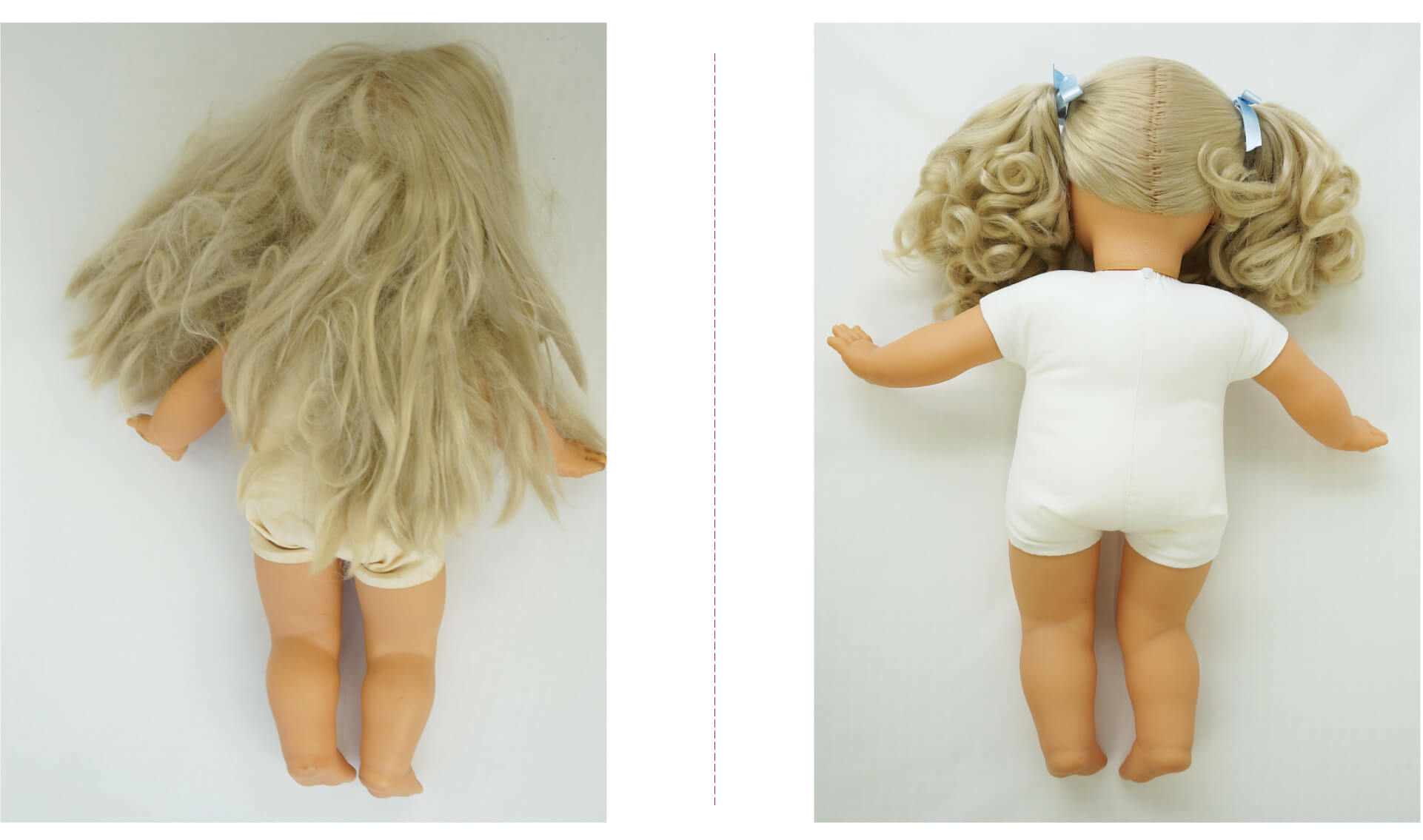 髪の毛は、カールが取れ、後ろの分け目の分岐が戻っていたのでカールを巻き直し、分け目を直しました。